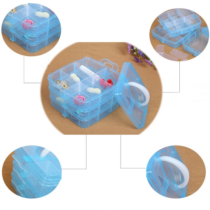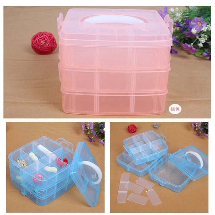 3 Layer 18 Grid Plastic Transparent Jewelry Storage Box